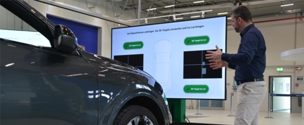 Im Rahmen der Live-Vorführung konnten die Experten Fragen stellen und viel über die Funktionen des neuen digitalen ADAS-Kalibriersystems erfahren. Ein Highlight war der 86-Zoll-Bildschirm, der das mühsame Handling von einzelnen Kalibriertafeln ersetzt.